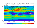 Low Pass Eddy Kinetic Energy at 200 hPa