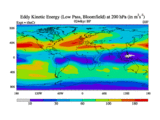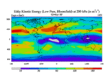Low Pass Eddy Kinetic Energy at 200 hPa