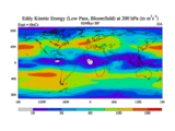Low Pass Eddy Kinetic Energy at 200 hPa
