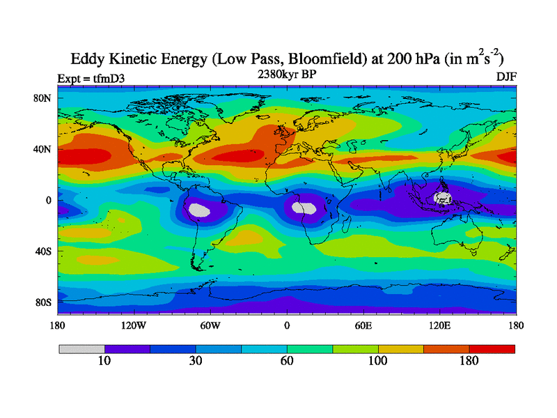 Low Pass Eddy Kinetic Energy at 200 hPa