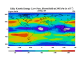 Low Pass Eddy Kinetic Energy at 200 hPa