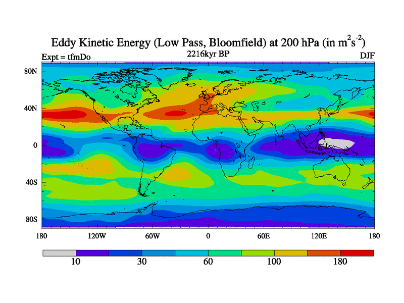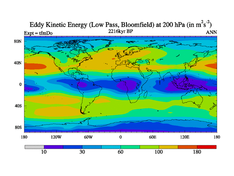 Low Pass Eddy Kinetic Energy at 200 hPa