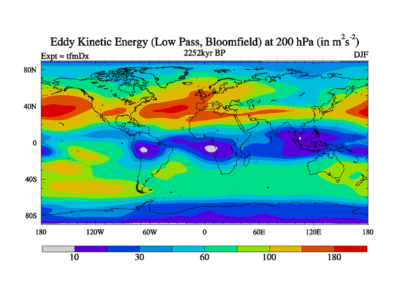 Low Pass Eddy Kinetic Energy at 200 hPa