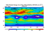 Low Pass Eddy Kinetic Energy at 200 hPa