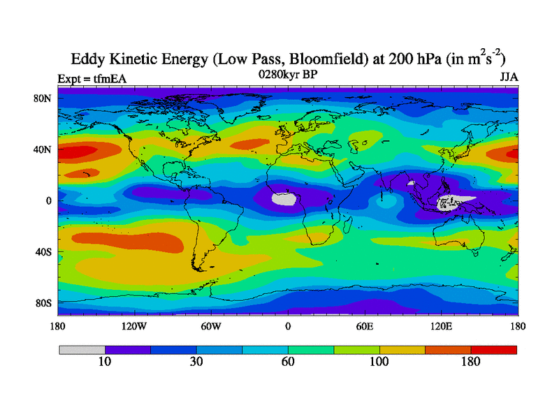 Low Pass Eddy Kinetic Energy at 200 hPa