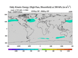 Low Pass Eddy Kinetic Energy at 200 hPa