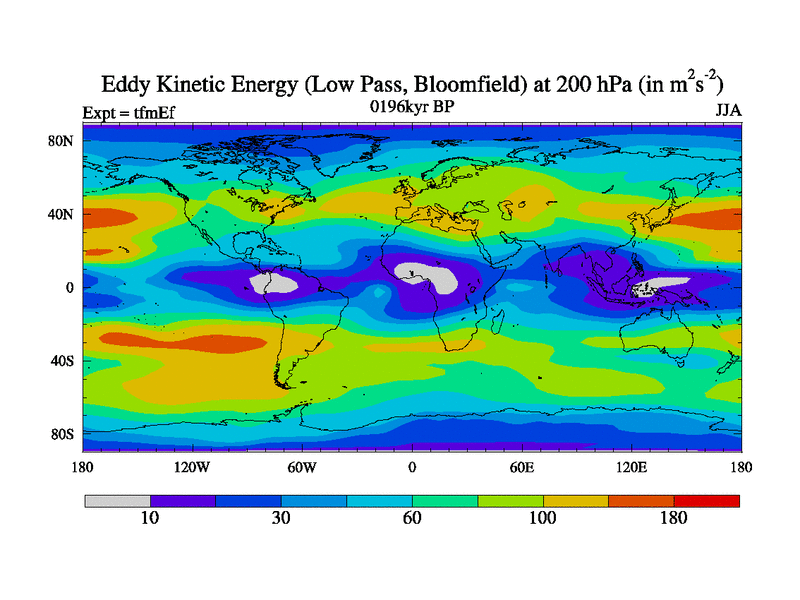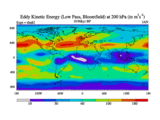 Low Pass Eddy Kinetic Energy at 200 hPa