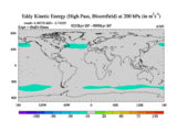 Low Pass Eddy Kinetic Energy at 200 hPa