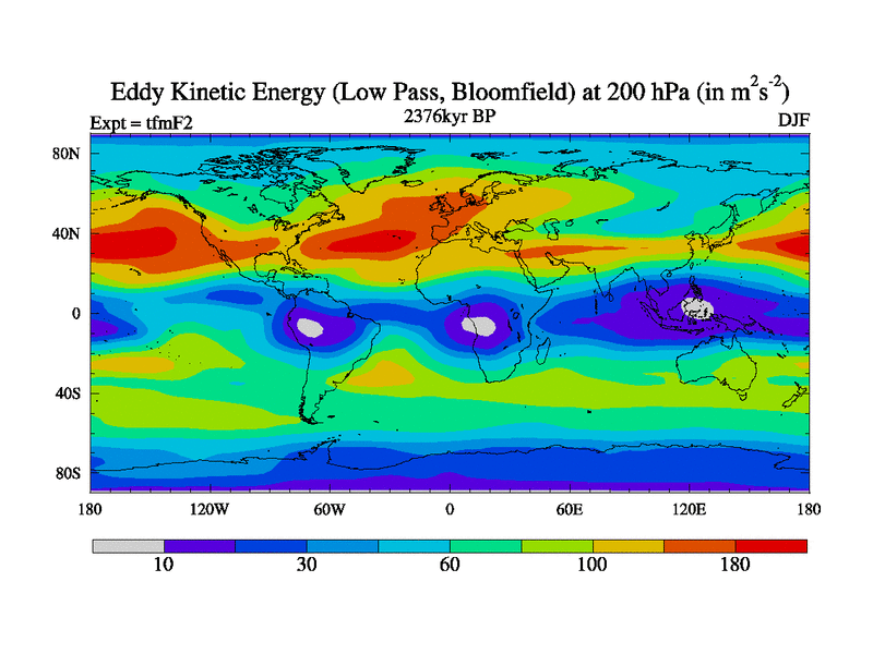 Low Pass Eddy Kinetic Energy at 200 hPa