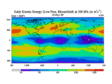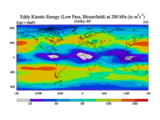 Low Pass Eddy Kinetic Energy at 200 hPa