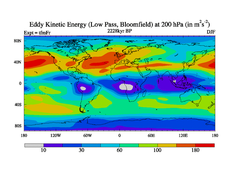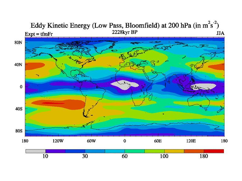 Low Pass Eddy Kinetic Energy at 200 hPa