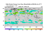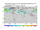 Low Pass Eddy Kinetic Energy at 200 hPa