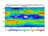Low Pass Eddy Kinetic Energy at 200 hPa