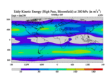 Low Pass Eddy Kinetic Energy at 200 hPa
