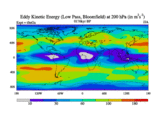 Low Pass Eddy Kinetic Energy at 200 hPa