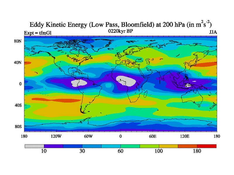 Low Pass Eddy Kinetic Energy at 200 hPa