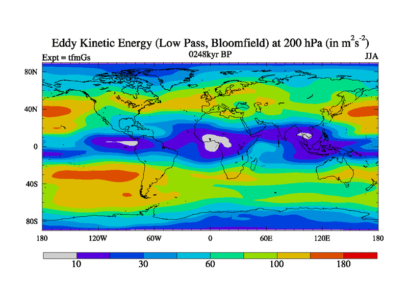 Low Pass Eddy Kinetic Energy at 200 hPa