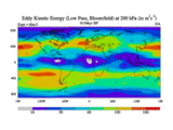Low Pass Eddy Kinetic Energy at 200 hPa