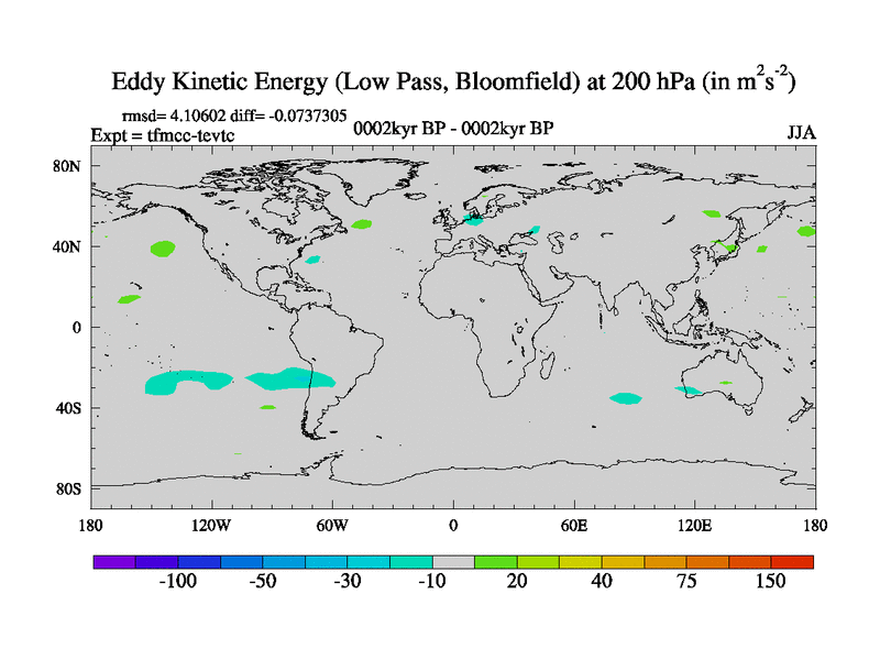 Low Pass Eddy Kinetic Energy at 200 hPa