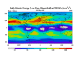 Low Pass Eddy Kinetic Energy at 200 hPa