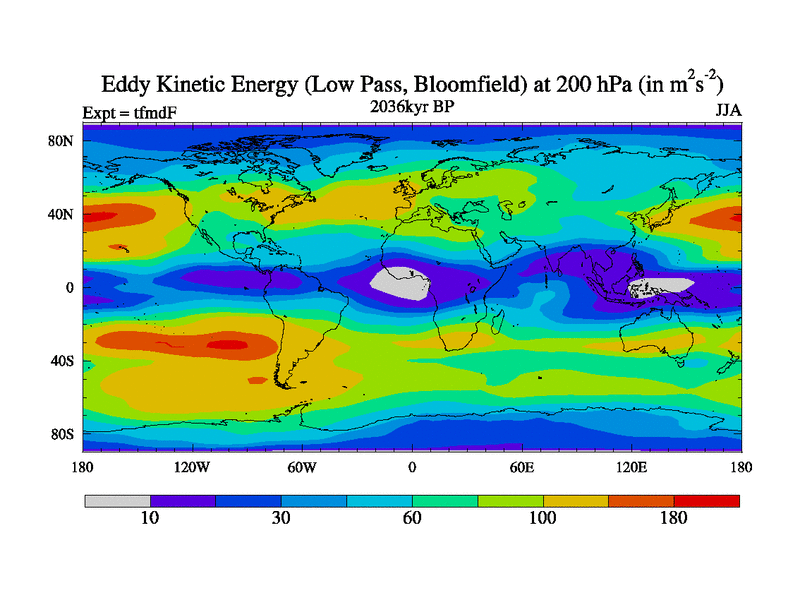 Low Pass Eddy Kinetic Energy at 200 hPa