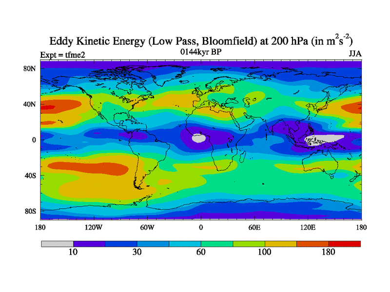 Low Pass Eddy Kinetic Energy at 200 hPa