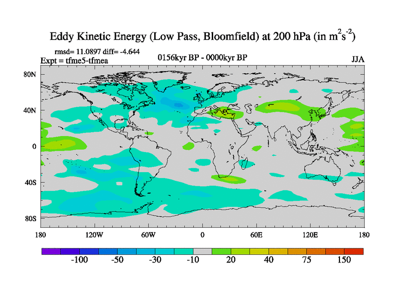 Low Pass Eddy Kinetic Energy at 200 hPa