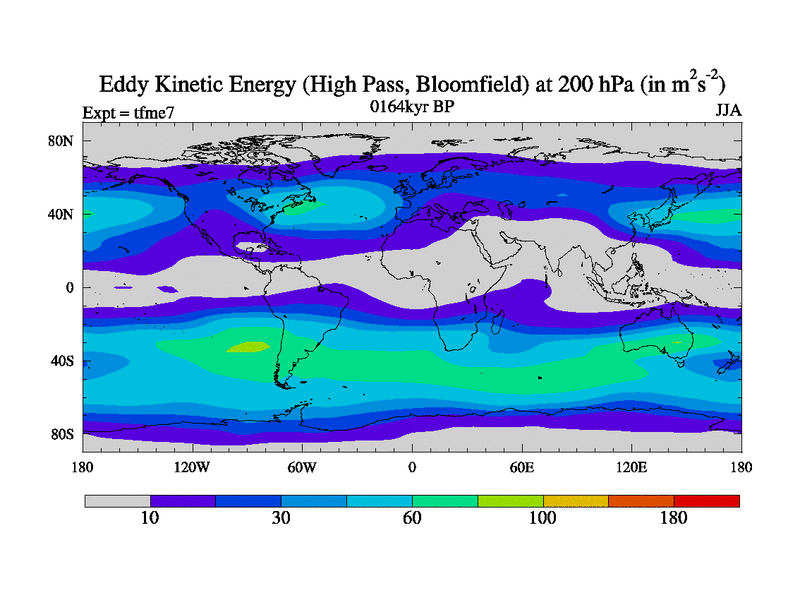Low Pass Eddy Kinetic Energy at 200 hPa