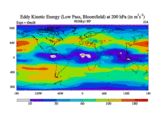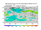 Low Pass Eddy Kinetic Energy at 200 hPa
