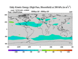 Low Pass Eddy Kinetic Energy at 200 hPa