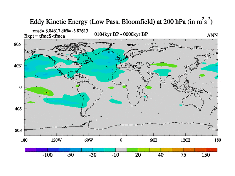 Low Pass Eddy Kinetic Energy at 200 hPa