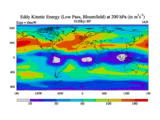 Low Pass Eddy Kinetic Energy at 200 hPa