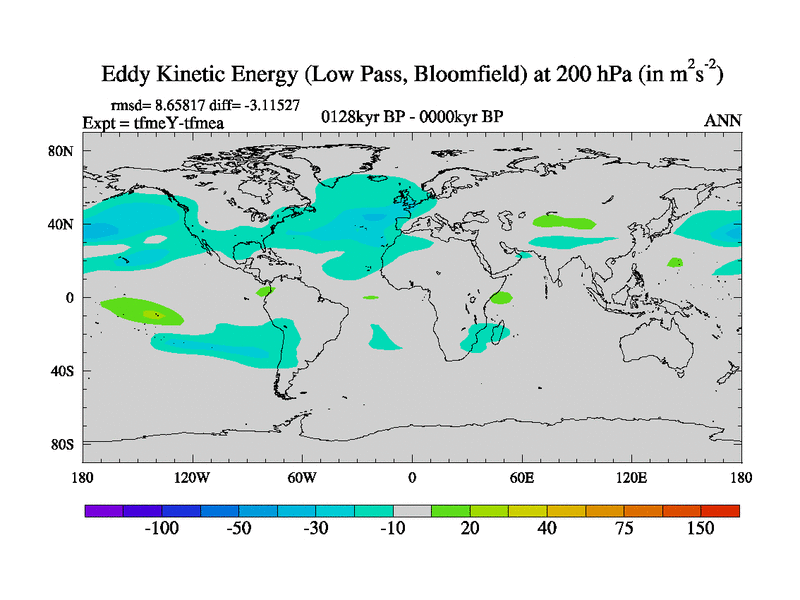 Low Pass Eddy Kinetic Energy at 200 hPa
