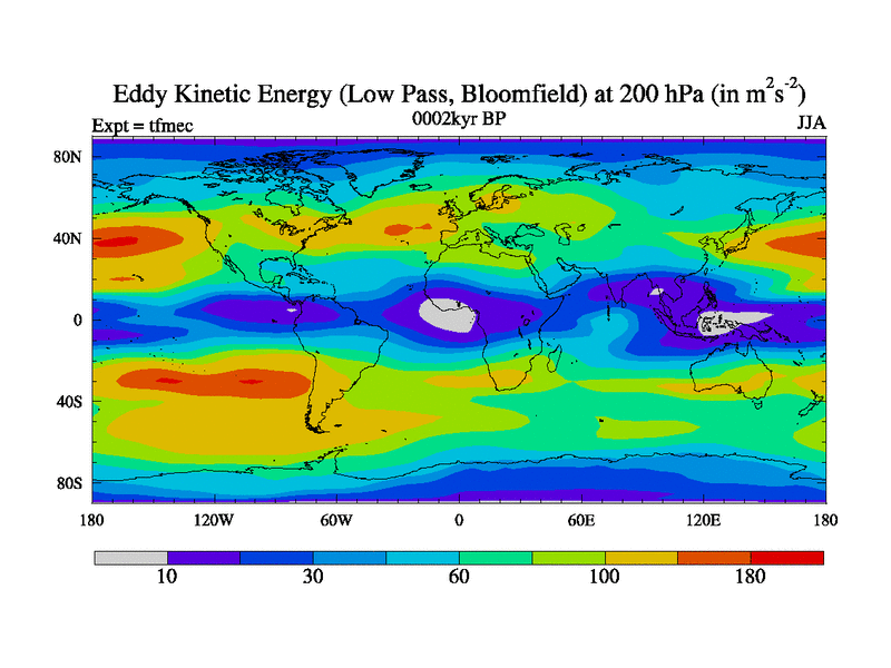 Low Pass Eddy Kinetic Energy at 200 hPa