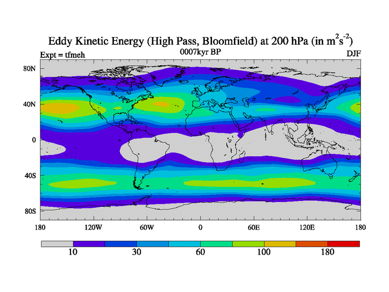 Low Pass Eddy Kinetic Energy at 200 hPa