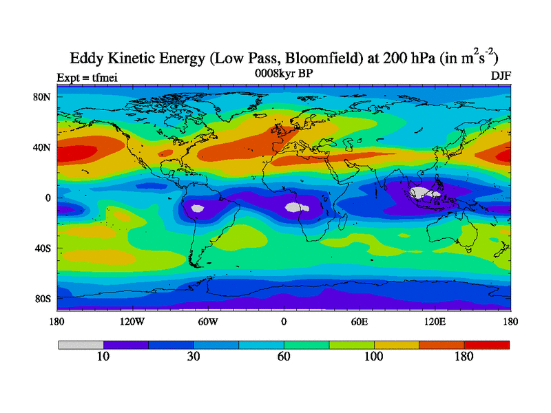 Low Pass Eddy Kinetic Energy at 200 hPa