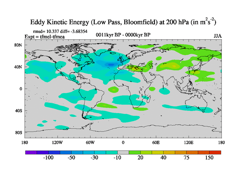 Low Pass Eddy Kinetic Energy at 200 hPa