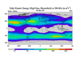 Low Pass Eddy Kinetic Energy at 200 hPa