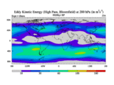 High Pass Eddy Kinetic Energy at 200 hPa