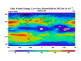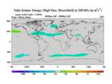 Low Pass Eddy Kinetic Energy at 200 hPa