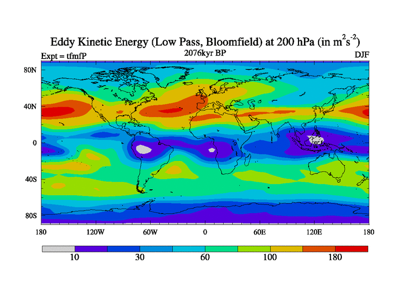 Low Pass Eddy Kinetic Energy at 200 hPa