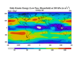 Low Pass Eddy Kinetic Energy at 200 hPa