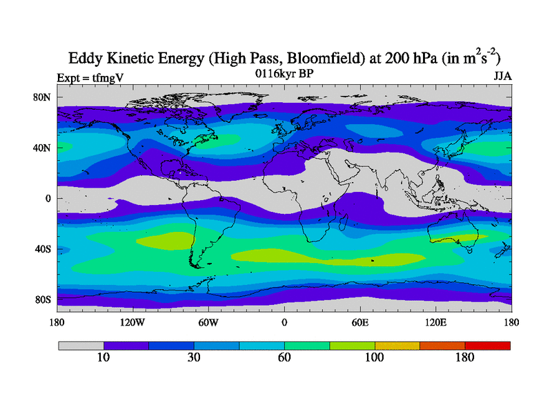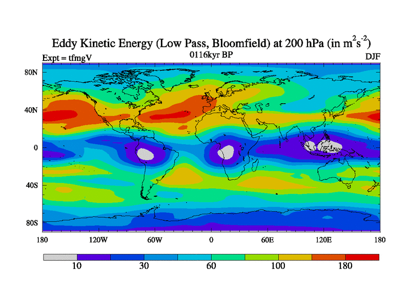 Low Pass Eddy Kinetic Energy at 200 hPa