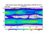 Low Pass Eddy Kinetic Energy at 200 hPa