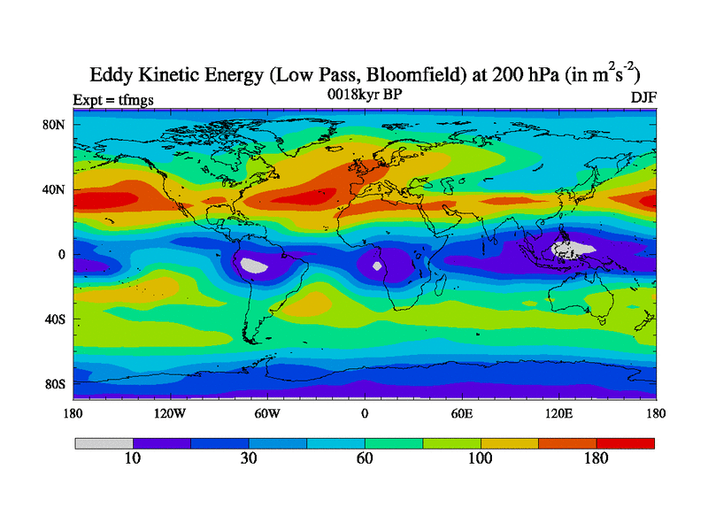 Low Pass Eddy Kinetic Energy at 200 hPa