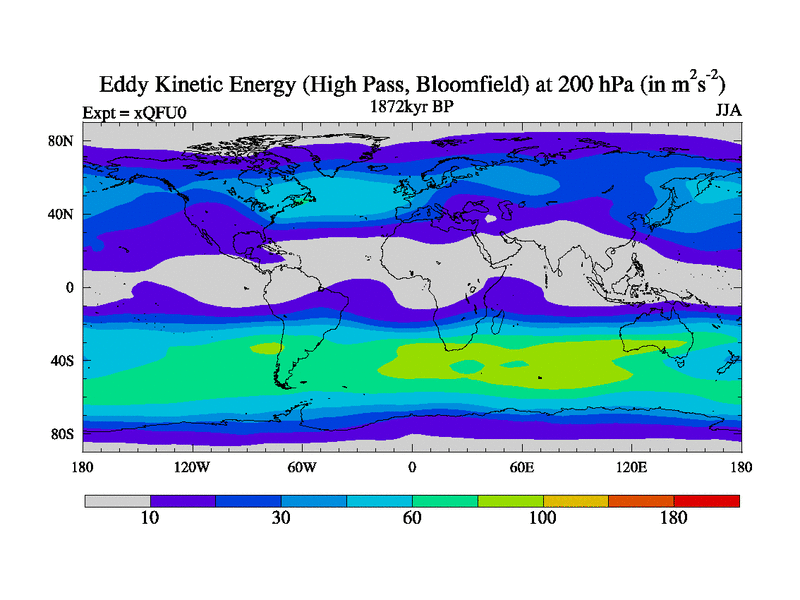 High Pass Eddy Kinetic Energy at 200 hPa