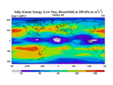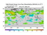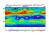 Low Pass Eddy Kinetic Energy at 200 hPa