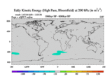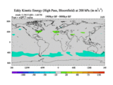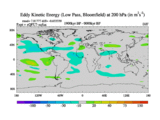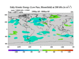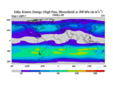 Low Pass Eddy Kinetic Energy at 200 hPa