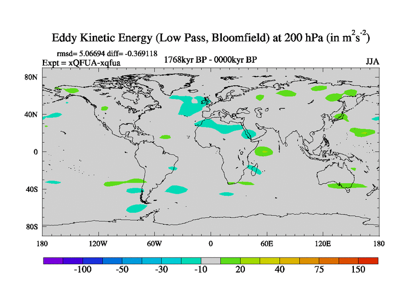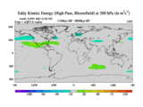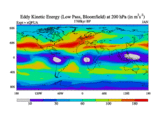 Low Pass Eddy Kinetic Energy at 200 hPa