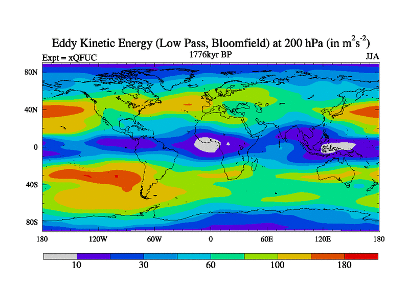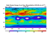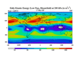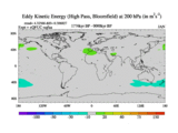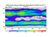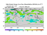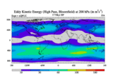 Low Pass Eddy Kinetic Energy at 200 hPa